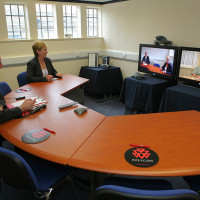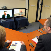We have two systems and can either present to twin screens or use a digital projector onto a large screen. We have access to thousands of sites worldwide if you need help finding a meeting room for your client. We strongly recommend a test call, so we can supply you a quality link – several people have commented on the quality of our meetings – please advise us how to contact the other site